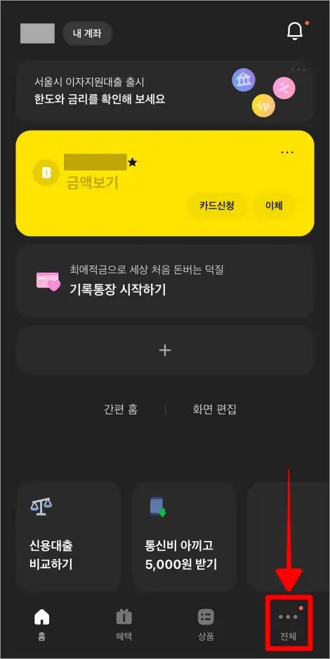 카카오뱅크 체크카드 비밀번호 변경 방법